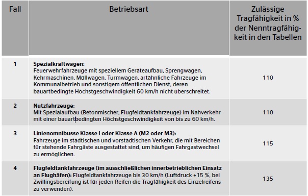 Tragfähigkeitsaufschläge - Sondereinsatzfälle nach ECE R 142